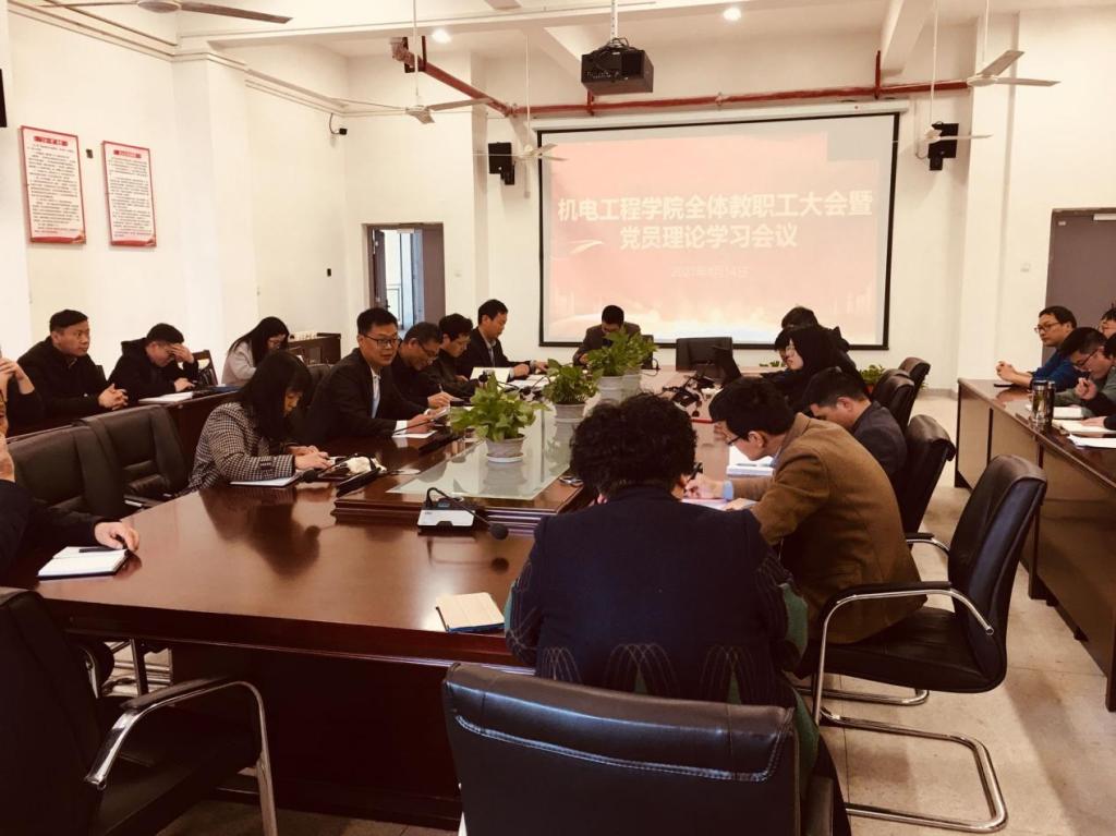4月14日下午,williamhill英国威廉希尔在机电楼二楼会议室召开全体教职工大会暨四月份党员理论学习会议。校党委委员、副校长孙兴林及全体教职工参加会议,会议由该院党总支副书记(主持工作)王克勇主持。