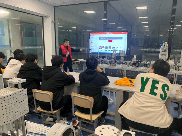 为响应国家关于加强校企合作的号召,充分发挥学校与企业双方优势,同时也为学生的实习、实训、就业提供更多空间,在校企双方共同努力下,2022年11月16日由威廉希尔体育与安徽中显智能机器人有限公司校企合作开设的中显视觉高端实验班在机电楼四楼合职院中显智能机器人视觉研究所举行了开班仪式。