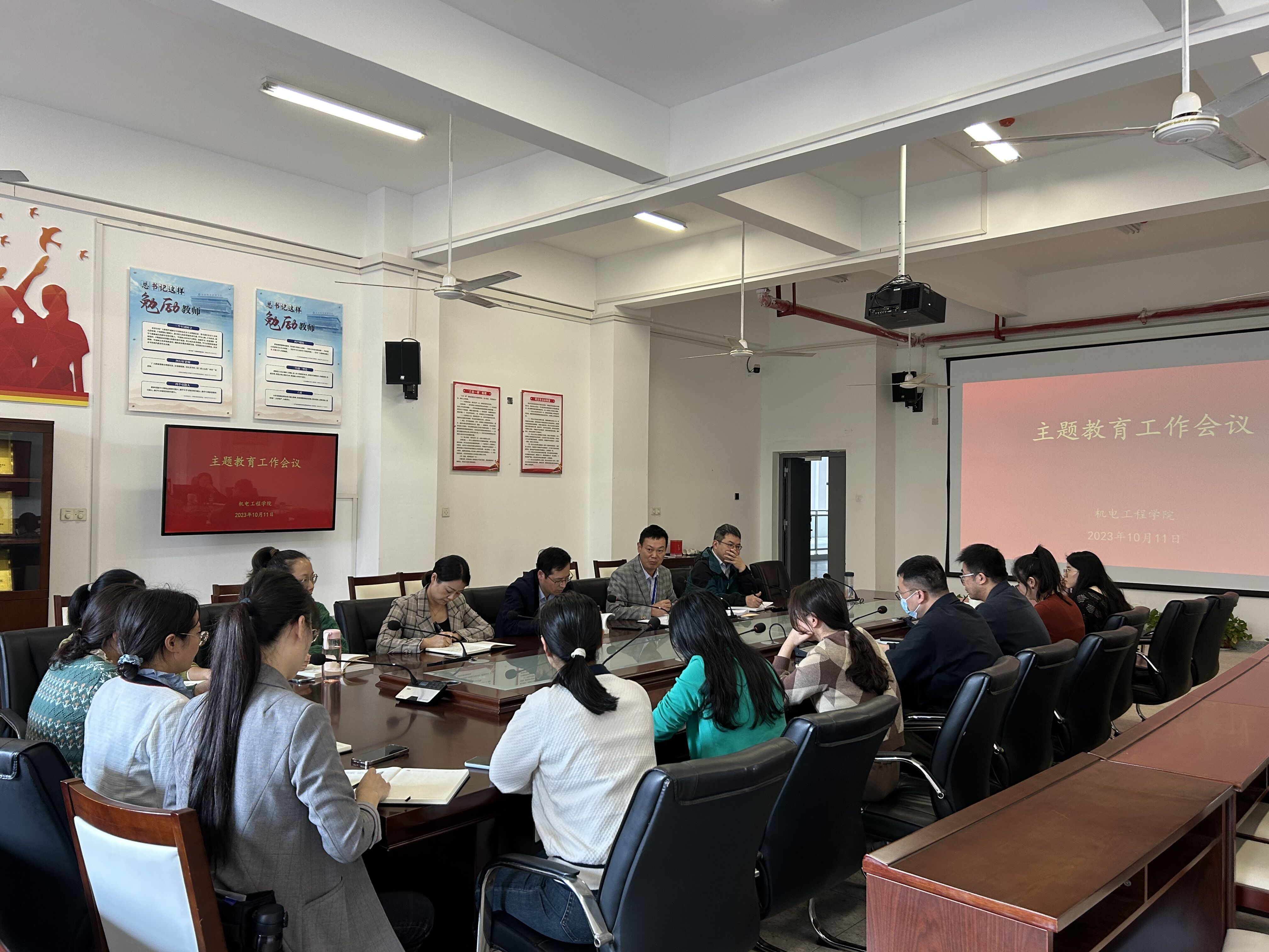 10月11日,williamhill英国威廉希尔在机电楼二楼会议室召开学习贯彻习近平新时代中国特色社会主义思想主题教育工作会议,深入学习贯彻习近平总书记关于主题教育系列重要讲话和重要指示批示精神,学院主题教育领导小组及各支部委员参加会议。会议由党总支副书记(主持工作)丁迎春主持。